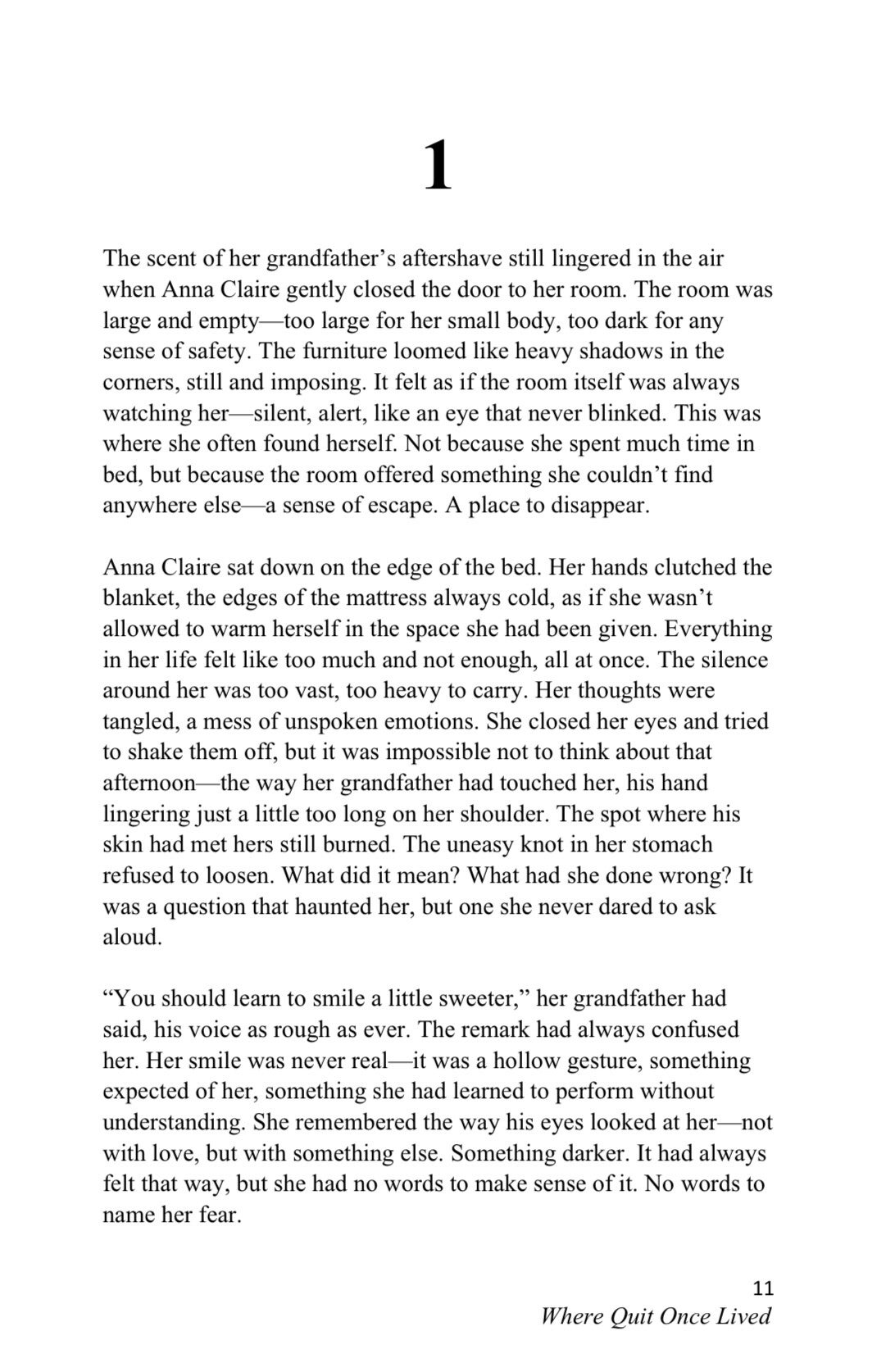 Where Quiet Once Lived is a compelling novel of psychological depth, intertwining family secrets, unspoken pain, and the quiet strength of resilience.